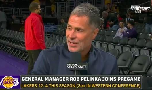 北京时间今日,湖人队在NBA杯的比赛中主场迎战快船队。赛前,湖人队总经理罗伯-佩林卡接受了采访。